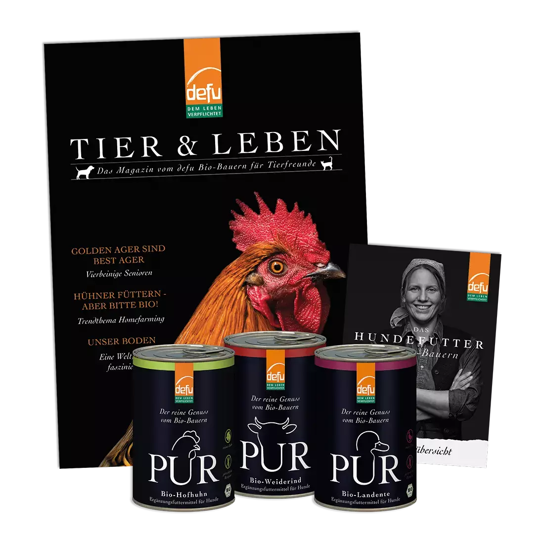 In unserem Futter befinden sich keinerlei chemische Aromen oder Farbstoffe und das kann man sehen und riechen. Für Frauchen oder Herrchen liegt für gemütliche Lesestunden in jedem Paket unser defu Magazin „Tier & Leben“, sowie eine Produkt-Broschüre mit Infos zu unserem Produktsortiment bei. Zusätzlich erhalten Sie Informationen für eine gelungene Futterumstellung.
