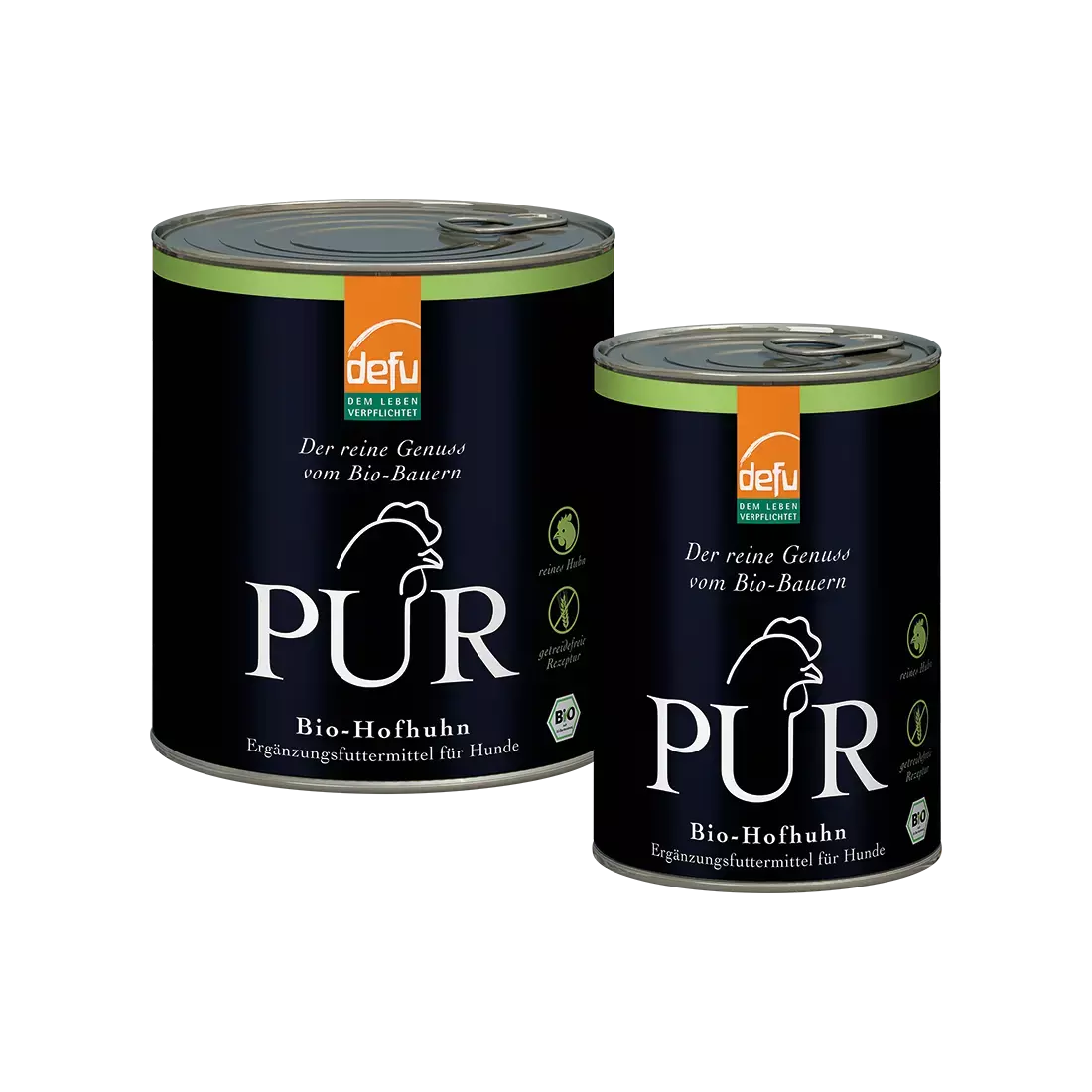 Eine gesunde und bedarfsgerechte Ernährung ist der Grundstein für die Gesundheit Ihres Tieres. Mit unserer PUR Linie haben Sie die Möglichkeit, echte Lieblingsmahlzeiten für Ihren Hund zuzubereiten. Die Rezeptur von PUR Bio-Hofhuhn besteht ausschließlich aus bestem Bio-Fleisch und ausgewählten Innereien und ist damit ideal als Alternative oder Ergänzung zur reinen Rohfleischfütterung (BARF) geeignet und kann von Ihnen individuell mit weiteren frischen Zutaten wie Gemüse, Obst, Reis, Kartoffeln, Mineralstoffen und gesunden Ölen Ihrer Wahl ergänzt werden.