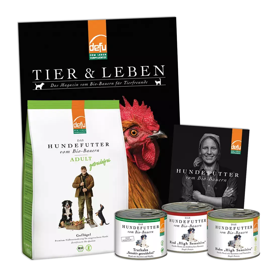 In unserem Futter befinden sich keinerlei chemische Aromen oder Farbstoffe und das kann man sehen und riechen. Für Frauchen oder Herrchen liegt für gemütliche Lesestunden in jedem Paket unser defu Magazin „Tier & Leben“, sowie eine Produkt-Broschüre mit Infos zu unserem Produktsortiment bei. Zusätzlich erhalten Sie Informationen für eine gelungene Futterumstellung.