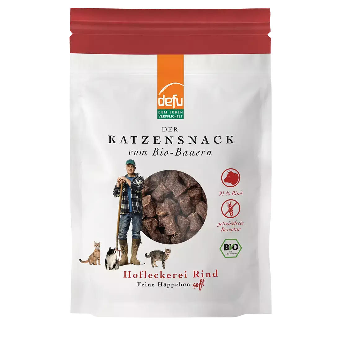 Die softe Belohnung für sanfte Pfoten. Häppchen aus frischem, schmackhaften Bio-Rind, verfeinert mit ballaststoffreicher gemahlener Leinsaat und Apfel. Schonend getrocknet.